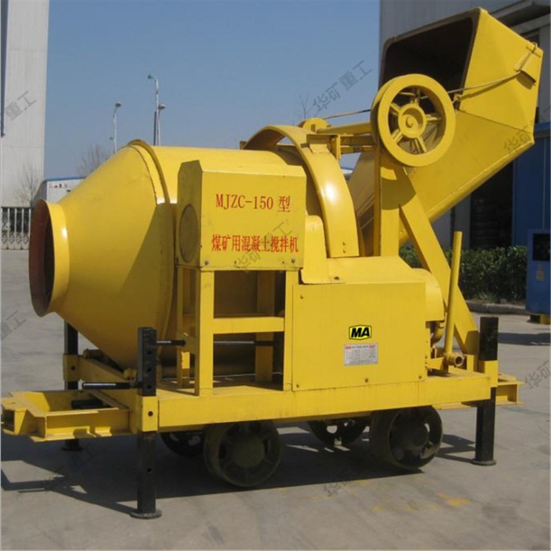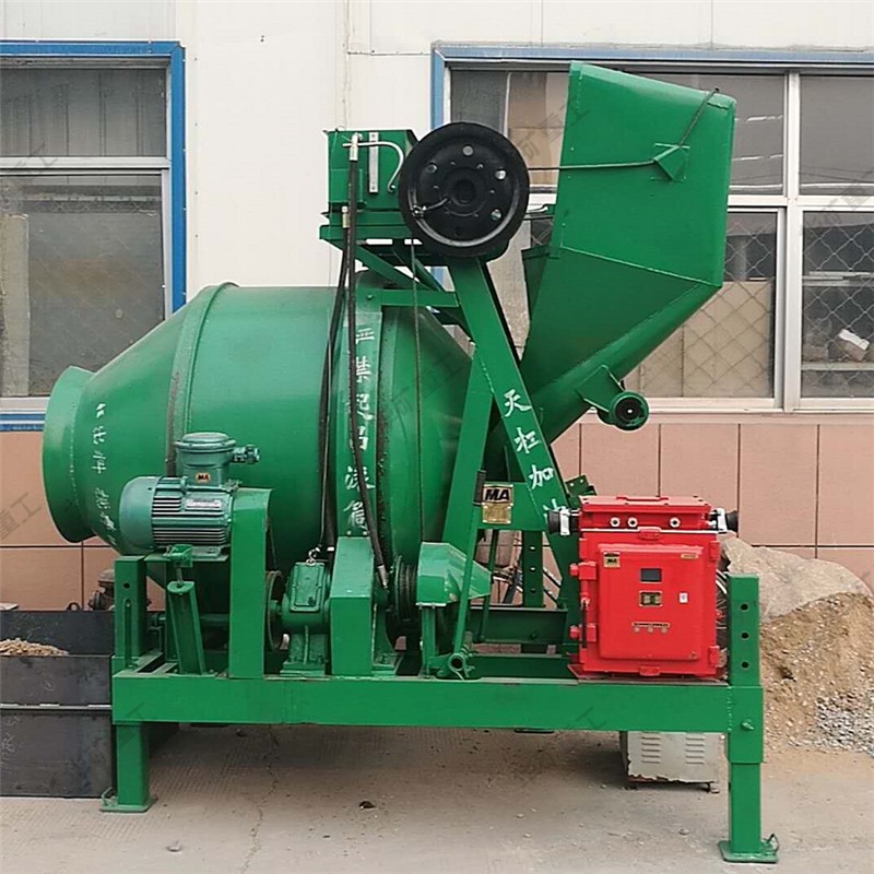 煤礦用混凝土攪拌機屬于自落式雙錐反轉出料移動式混凝土攪拌機,可攪拌塑性和半干硬性混凝土,攪拌筒正轉攪拌,反轉出料。適用于礦山井下巷道等窄小工作環境;齒輪轉動,結構緊湊,運轉可靠;電控系統均采用安標產品,可適應于隔爆環境下作業。