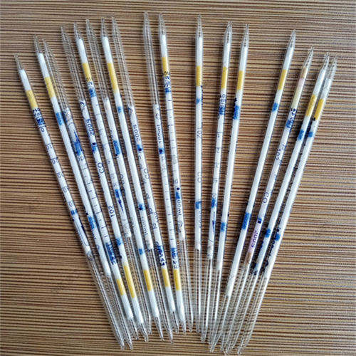氣體檢測管外殼材質玻璃管,內裝一定載體和吸附劑,氣體通過時發(fā)生變色反應,由白色變成黃綠色,變色長度與二氧化氮氣體的濃度成正比,比長定量,而濃度標尺一般都直接印在檢測管上,因此可以直接從檢測管上的標尺讀取被測氣樣中氣體的濃度。檢測管以其快速、直觀、經(jīng)濟適用、安全可靠、操作簡單,隨時隨地都可檢測等優(yōu)點,廣泛用于環(huán)保、化工、煤炭、石油等多領域。
